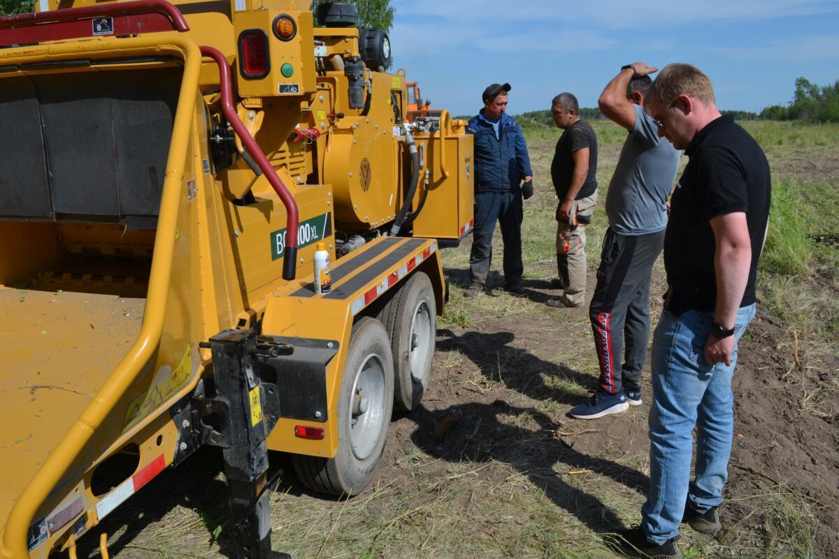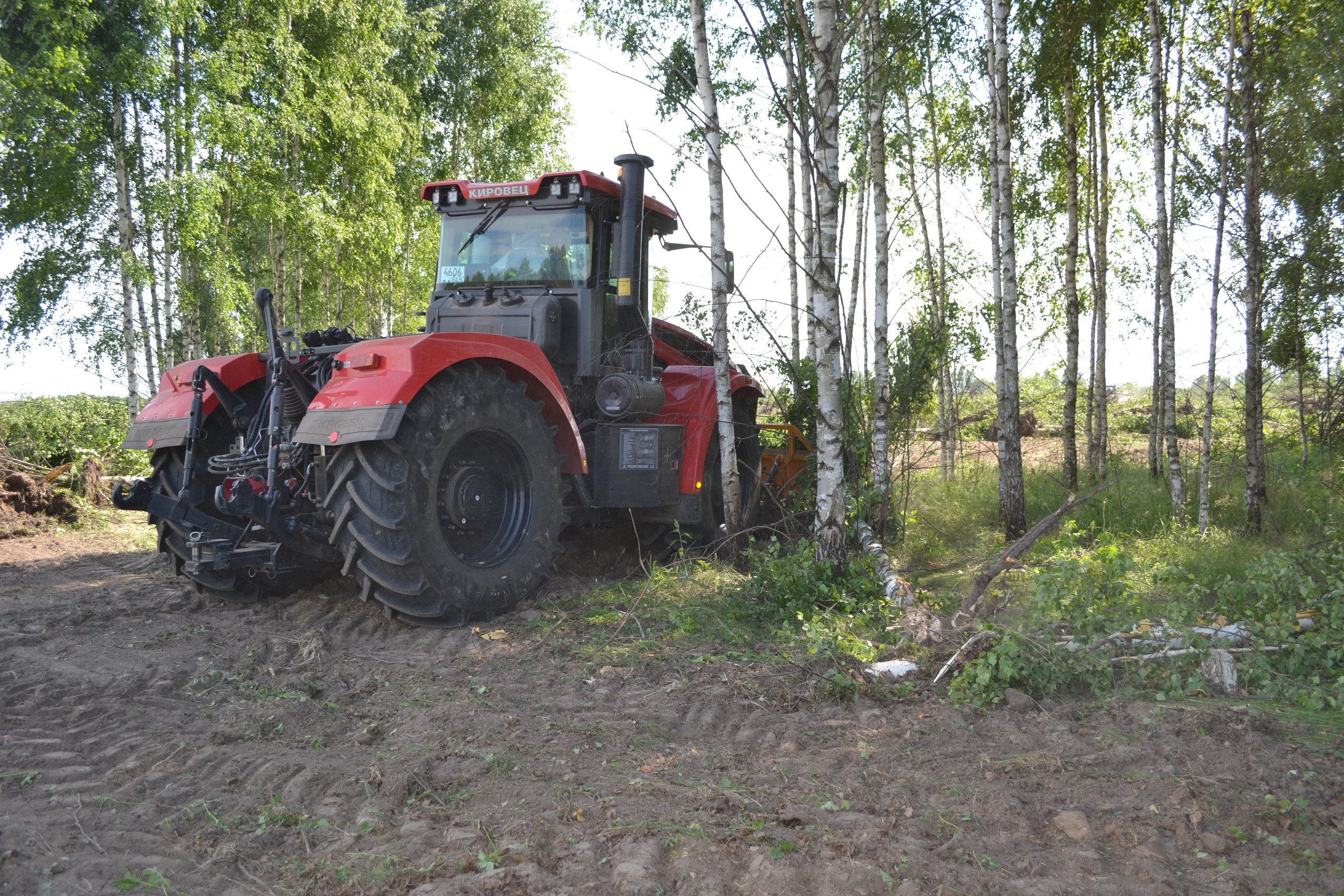 К примеру только на сегодняшний день 14 июля, неподалеку от районного центра задействовано около двадцати единиц техники различных марок и модификаций. Корчевку деревьев ведут в основном кировцы. Применяются экскаваторы.