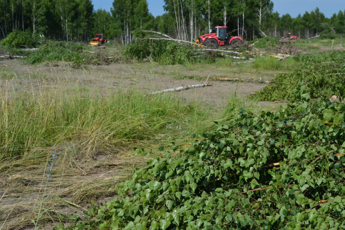 После освобождения полей от древесной растительности, планируется проведение боронования земельных массивов в два следа».