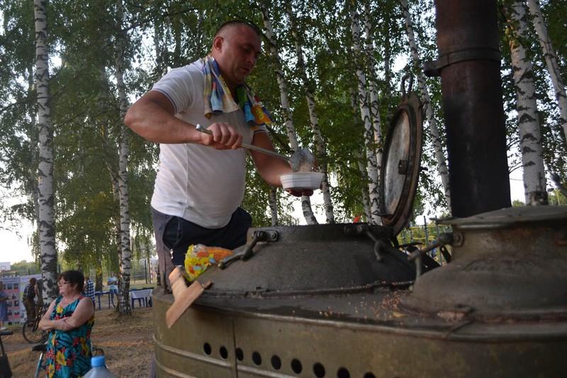 Для детей работали аттракционы, шла торговля прохладительными напитками и шашлыками. Всех угощали кашей из полевой кухни.