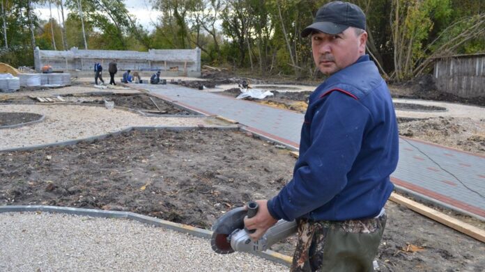 «К работам на объекте мы приступили еще в первых числах сентября. За прошедший месяц территория будущего сквера заметно преобразилась. На площади размером 55 на 27 метров удалили деревья и кустарники, провели планировку территории, разметку дорожек, клумб. Закончили прокладку кабеля для электроосвещения. На стройку завезли требуемый объем песка и щебня, кирпича для возведения сцены.