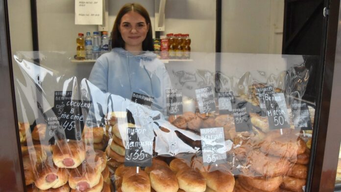«Покупателей привлекает к вкусная выпечка, невысокая цена и вежливое обращение. Все, что есть на прилавке, думаю, к вечеру уже не будет. Не первый раз мы на ярмарках. Точно не скажу, но четыре раза точно были. Первый раз был на Пасху. Тогда в первый же день продали 1600 с лишним пирогов».