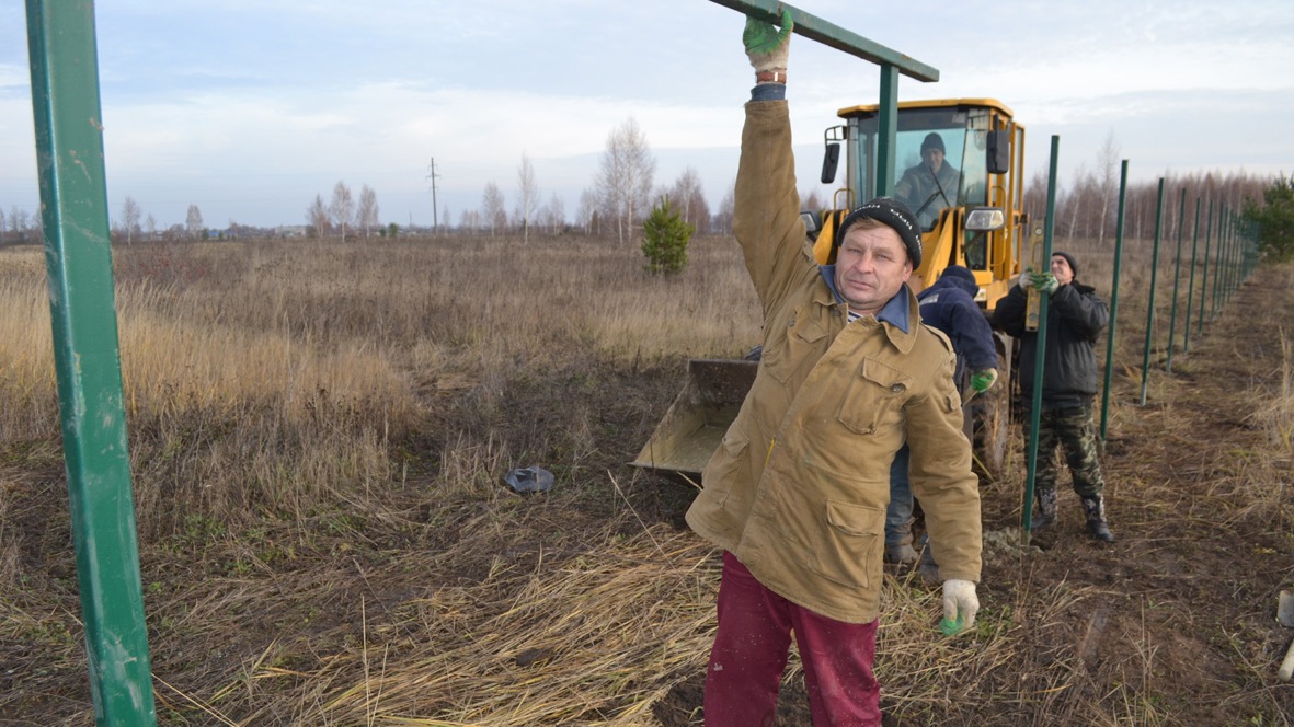 Сегодня, 14 ноября, мы продолжаем огораживать территорию базы. Общая площадь участка 200 на 150 метров. Нам предстоит огородить по периметру 700 погонных метров территории. Фасад к трассе Шацк–Касимов загородим сварными панелями Mediom, остальную часть –двухметровой сеткой. На территории базы возведем ангар для техники, гаражи, площадку для сельхозтехники, административное здание».