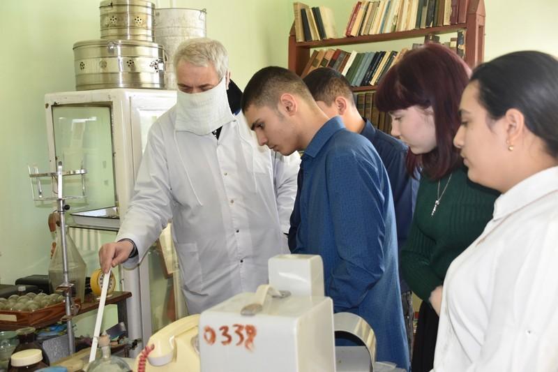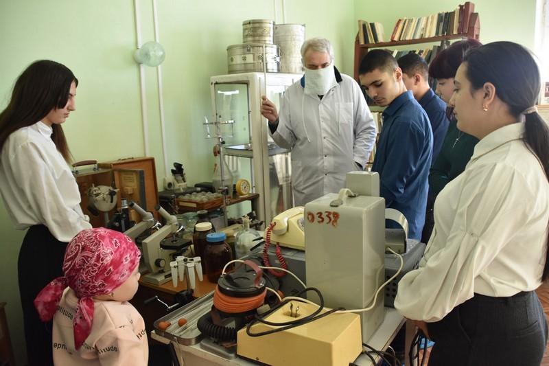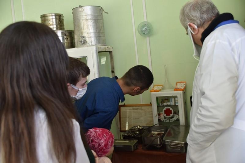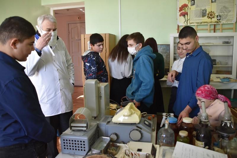 «Нашему музею истории медицины, созданному при Пителинской больнице, в этом году исполнится 13 лет. Школьникам сегодня представилась возможность послушать подробный рассказ экскурсовода, участкового врача местной больницы с 30-летним стажем работы. Сергей Михайлович Гераскин собирает и бережно хранит экспонаты музея. Среди них есть по-настоящему раритетные. Это, к примеру, микроскоп 1942 года выпуска, стетофонендоскоп образца середины 30-х годов прошлого века».