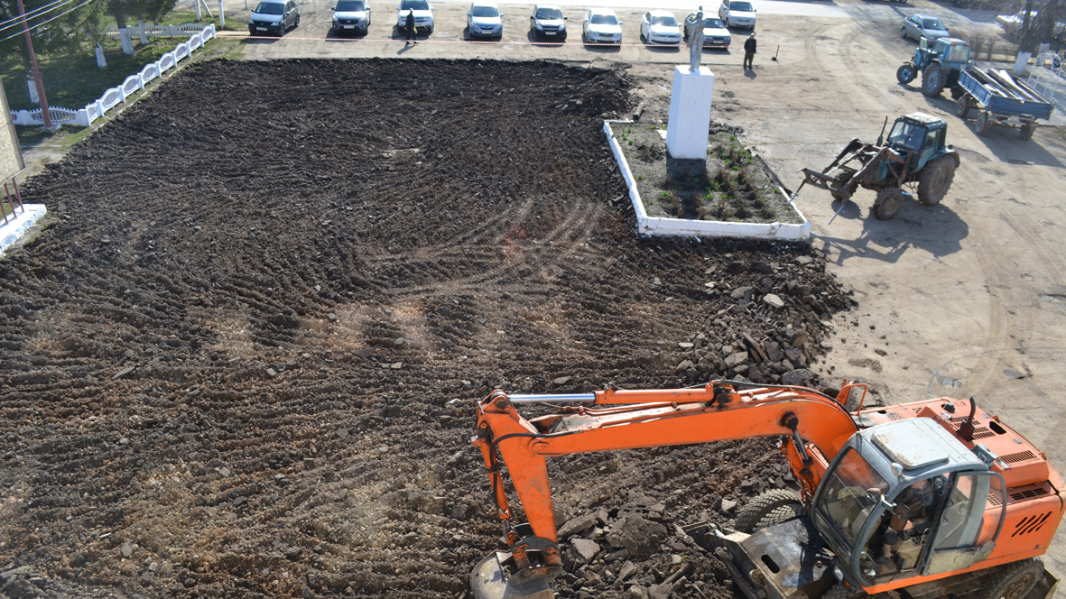 На улице Советская площадь рабочие и специалисты ООО «Заречное» приступили к ремонту площади перед районной администрацией.