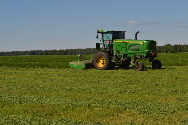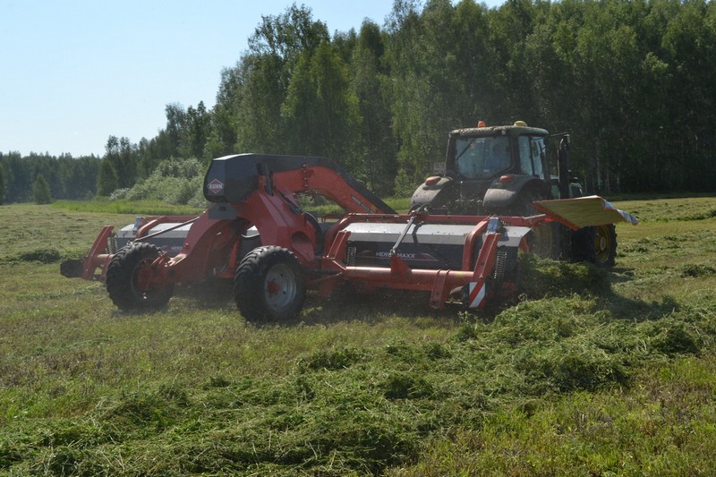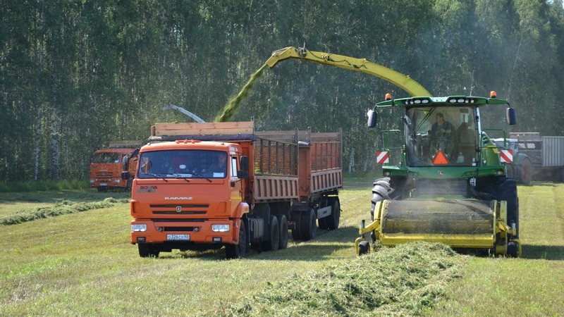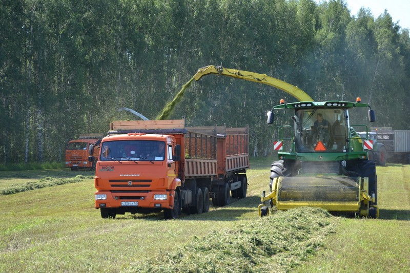 Отвозим провяленную зеленку на площадку Подболотьевского животноводческого комплекса. На отвозке заняты восемь Камазов с прицепами. На заключительном этапе работ – разравнивании и трамбовке работают четыре трактора. Урожайность многолетних трав неплохая, где-то в районе 70 центнеров с гектара».