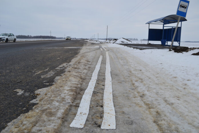 Корреспондент газеты отправился на место. На всем отремонтированном участке (а это девять километров) разметку нанесли как положено – по оси дороги на асфальт. Разметка по льду действительно была у построенной автобусной остановки села Свищево. Как она там появилась, рассказал мастер Касимовского ДРСУ Денис Агафонов.