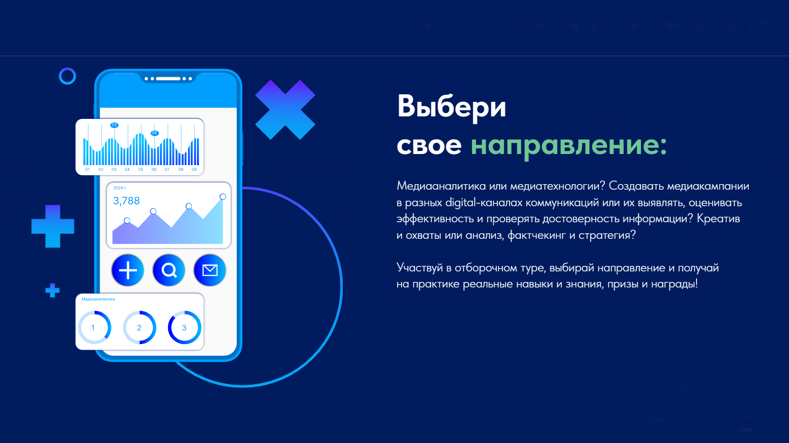 Конкурсантам предстоит выполнять реальные задачи в открытом интернете. В финале участники поделятся на две группы: медиатехнологи будут создавать медиакампании по реальным проектам партнеров, чтобы максимально распространять позитивную информацию, а медиааналитики – выявлять и анализировать созданные медиакампании.