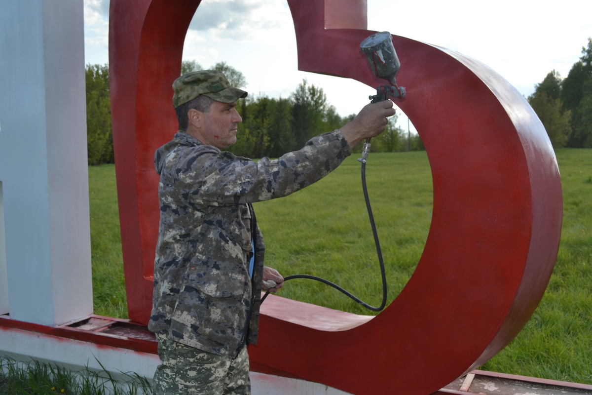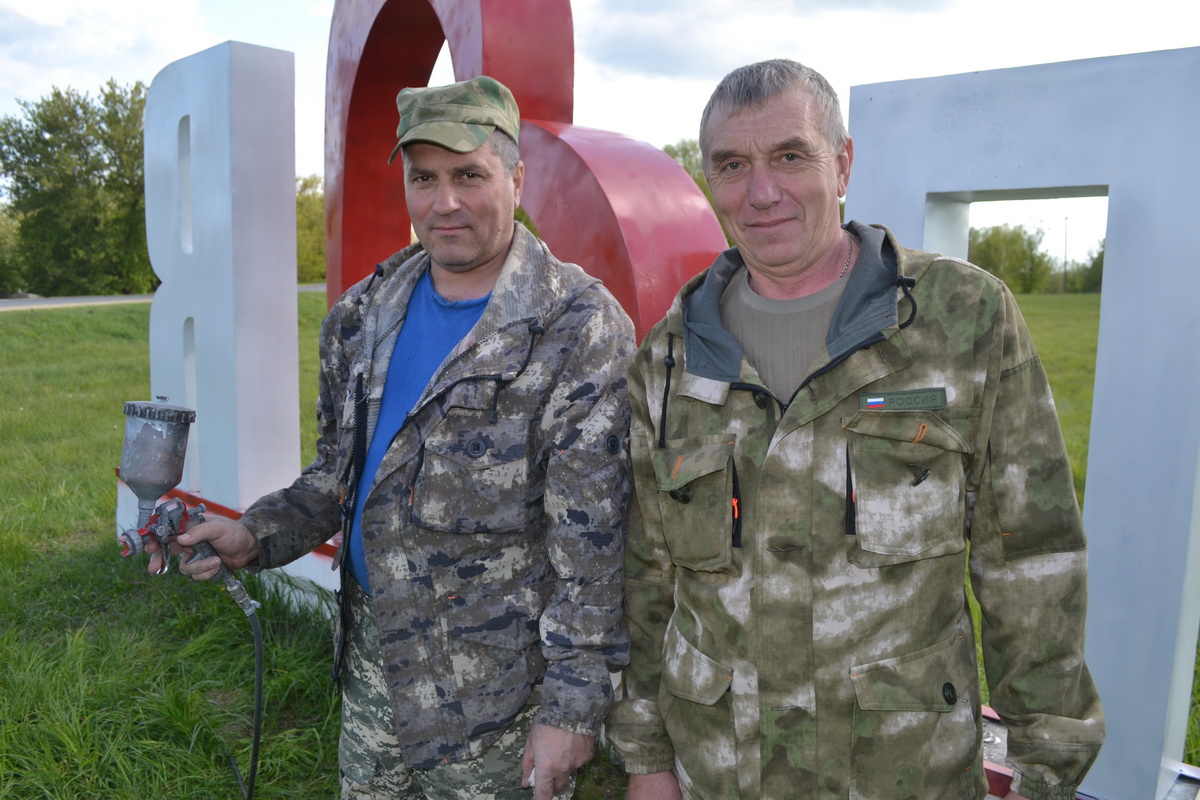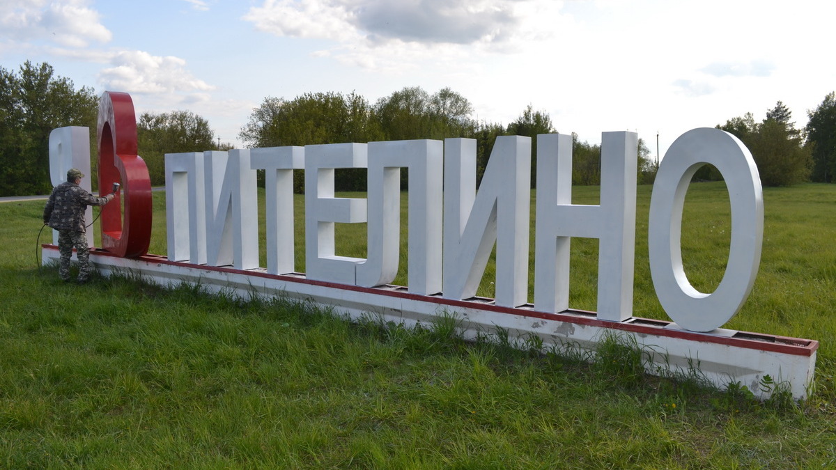 15 мая работники городской администрации покрасили въездной знак в Пителино.