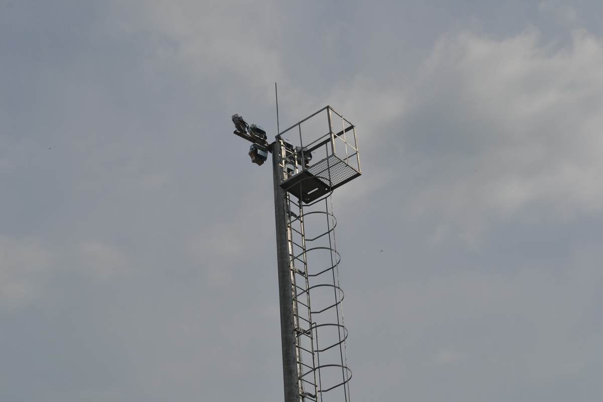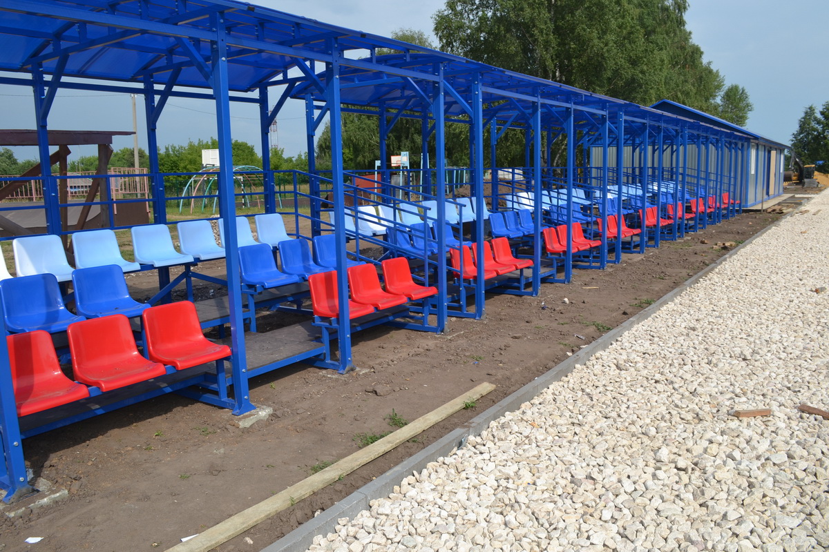 На стадионе «Урожай» в рабочем поселке Пителино за минувшую неделю установили осветительные мачты и трибуны.