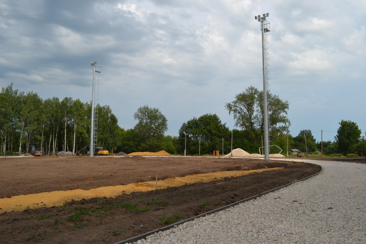 «За прошедшую неделю рабочие и специалисты нашей организации, используя специальную технику установили четыре осветительные мачты со светильниками на футбольном поле. У модульных бытовок разместили пять крытых секций трибун по 20 мест в каждой. С 4 июля приступили к установке забора вокруг спортивной площадки из 3d панелей. Ведем строительство подъездной дороги к спортивному объекту от улицы Садовая. В работе задействован экскаватор, каток, грузовики для подвоза песка и грунта. В ближайшее время планируем посеять газонную траву на футбольном поле».