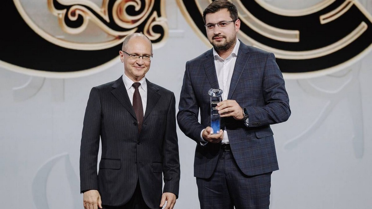 Сергей Кириенко вручил Артему Никитину памятную статуэтку.