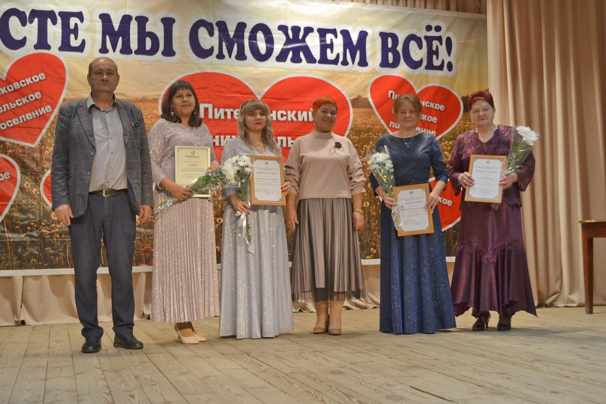 Поздравила коллег по работе Анна Васина – начальник отдела культуры, спорта и туризма, почетный работник культуры и искусства Рязанской области. Она вручила почетные грамоты главы администрации района руководителю кружка Веряевского Дома культуры Татьяне Мошниной и директору Пителинского районного Дома культуры Ирине Борисовой, благодарности главы администрации района руководителю спортивного кружка культурно-спортивного комплекса «Нестерово» Валерию Федотову и исполняющей обязанности директора Потапьевского сельского Дома культуры Олесе Чуриной.