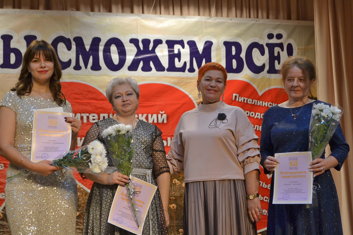 Почетные грамоты Думы Пителинского района получили Елена Борисова – директор Пеньковского сельского Дома культуры, Валентина Заикина – директор Краснопартизанского сельского Дома культуры, Олеся Астахова – директор культурно-спортивного комплекса «Нестерово».