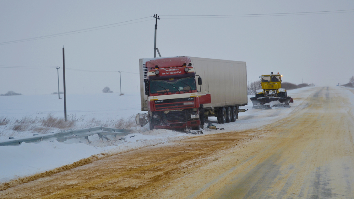 Вторая авария произошла у села Гавриловское Сасовского района. Грузовик DAF, двигавшийся в сторону города Сасово, выполнял маневр. При перестроении водитель также не справился с управлением. Машина ударилась о железное ограждение трубопереезда и остановилась, затруднив движение на дороге».