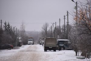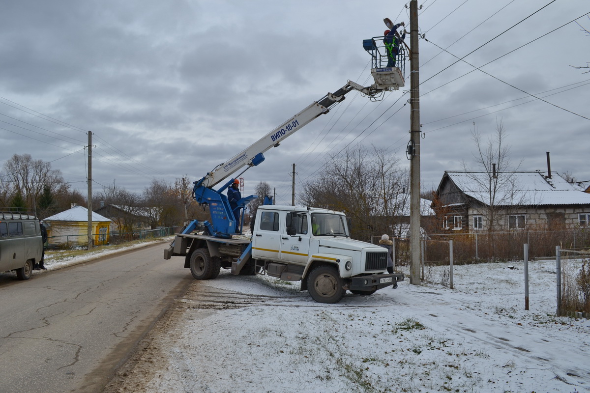 6 ноября на улице Пушкина рабочего поселка Пителино работала бригада электриков и машина – автогидроподъёмник.