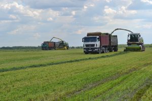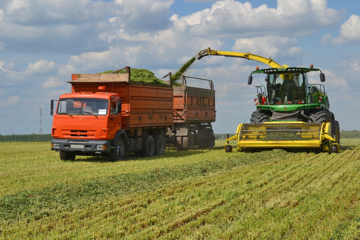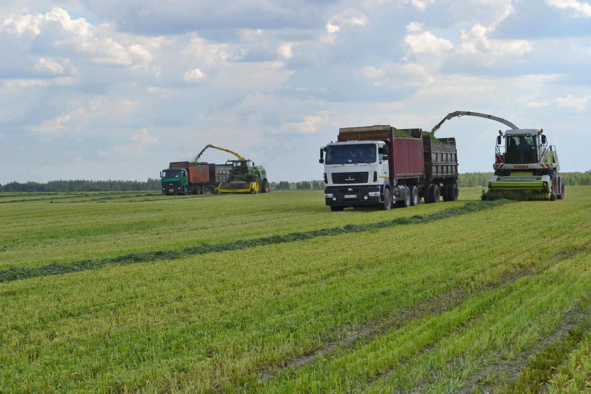 «Погодные условия нынешней весны способствуют хорошему росту и развитию трав», — говорит главный агроном одного из производственных хозяйств «ГК «ЭкоНива» Константин Петюшкин. К заготовке кормов для поголовья крупного рогатого скота в подразделении приступили в середине второй декады мая. По сравнению с прошлым годом кормозаготовительную кампанию начали раньше. Уборку однолетних трав(тритикале) начали с поля, расположенного неподалеку от рабочего поселка Пителино. В работу задействовали самоходные косилки, грабли, ворошилку, валкообразователь, кормоуборочные комбайны. Транспортировку подвяленной зеленки с поля к животноводческому комплексу «Подболотье» осуществляют до десятка единиц грузовиков с прицепами. Затем зеленую массу разравнивают и трамбуют на бетонной площадке у комплекса. Всего нам предстоит убрать культуру на сенаж на площади чуть более 700 гектаров. Ну а вслед за тритикале подойдут к уборке посевы многолетних бобовых трав. Продолжим готовить сенаж из люцерны».