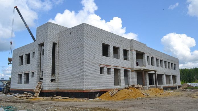«На 20-е числа июня мы закончили в полном объеме кладку стен из силикатного кирпича как Дома культуры, так и спортивного зала. Завершили монтаж железобетонных плит перекрытия второго этажа, за исключением зрительного зала и спортивного зала. Там в скором времени в специально подготовленные проемы лягут стальные фермы, которые будут основанием для монтажа плит перекрытия кровли.