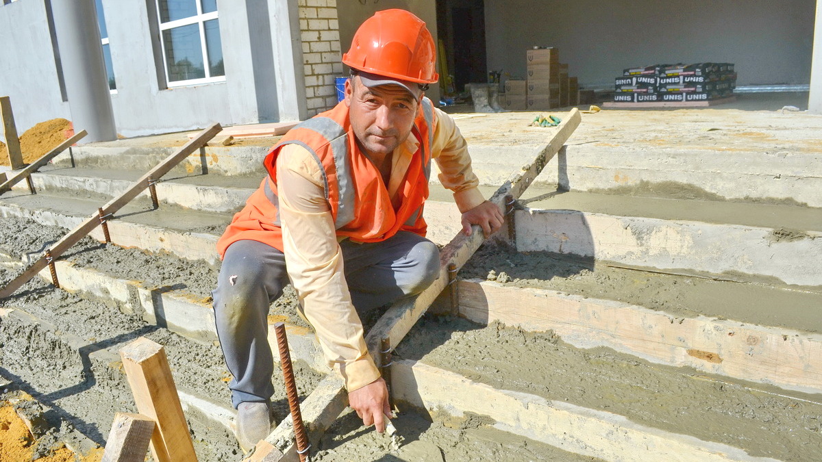 «Закончили монтаж металлических ферм перекрытия актового и спортивного залов. Практически в полном объеме закончили внутренние штукатурные работы. Также в полном объеме заштукатурили наружные стены с утеплителем. Установили пластиковые окна во всех помещениях Дома культуры. Осталось установить их только в спортивном зале. Бригада плиточников в составе шести человек ведет отделочные работы в технических помещениях. На конец июля на стройке работают в общей сложности около 40 человек и четыре единицы техники – подъемный кран, экскаваторы и манипулятор. Недавно ход строительства проконтролировали гости из областного центра: Заместитель председателя правительства Рязанской области Александр Шаститко и министр сельского хозяйства и продовольствия Рязанской области Дмитрий Филиппов. Поверьте на слово, мы очень стараемся, чтобы выдерживать набранный темп работ», – добавил Александр Ларионов.