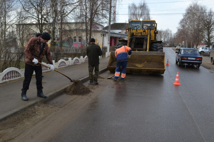 «Эта дорога берет свое начало в самом центре рабочего поселка Пителино. В зимний период времени техника нашей организации неоднократно проводила у сквера посыпку дороги песчаной смесью с солью, чтобы предотвратить ее обледенение. За зимние месяцы ее здесь скопилось немало. А потому сегодня расчищают дорогу и тротуар, прилегающий к ней, наша бригада рабочих и трактор «Кировец» под управлением Василия Торбаева. Навести здесь, у сквера, должный порядок – наша главная задача на сегодняшний день».