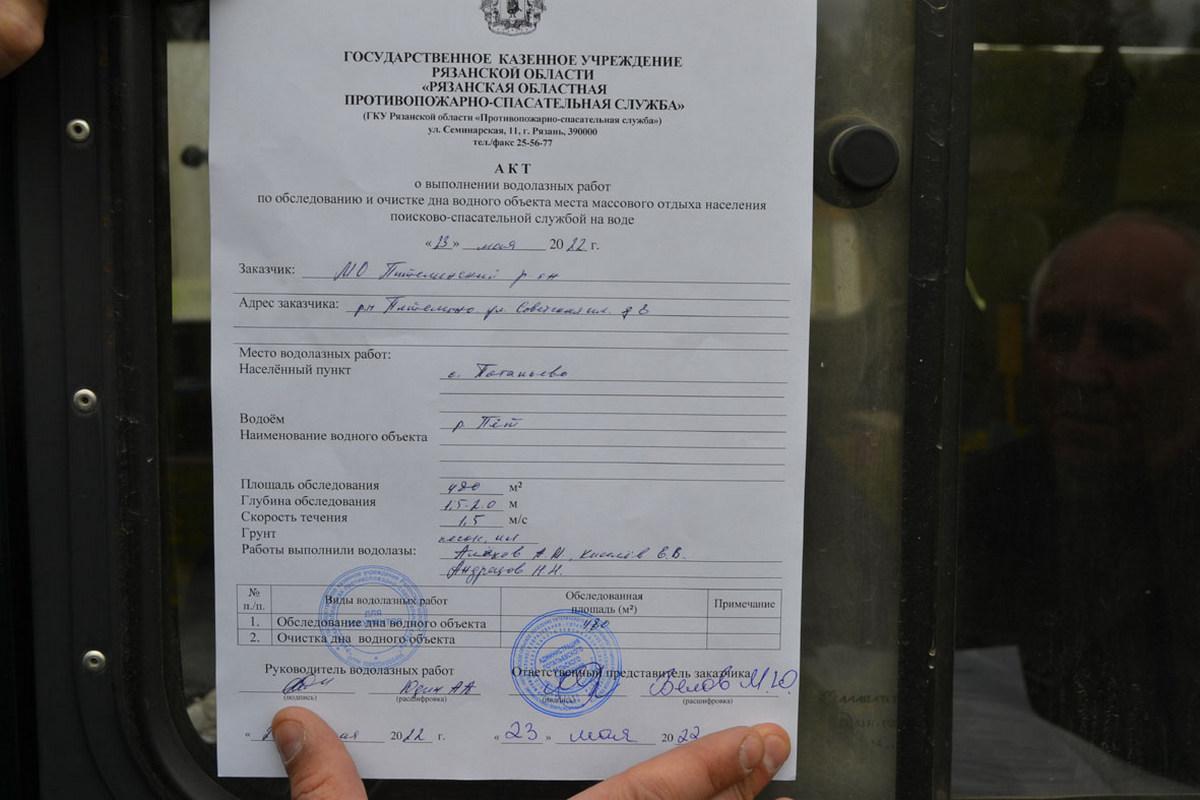 В преддверии пляжного сезона водолазы ГКУ Рязанской области «Противопожарно-спасательная служба» 23 мая обследовала дно на реке Пет в селе Потапьево – месте массового отдыха в Пителинском районе.